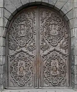 - a door (moving part of a hinged door that swings out or in, as opposed to a sliding door or the doorway as a whole)