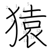 猿 (Kangxi radical 94, 犬+10, 13 strokes, cangjie input 大竹土口女 (KHGRV), four-corner 44232, composition ⿰犭袁)