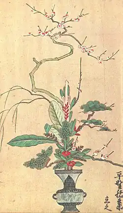 Possibly from Middle Chinese compound 立花 (MC lip xwae, “lit. stand + flower”) or 立華 (MC lip xwae, “lit. stand + flower”).