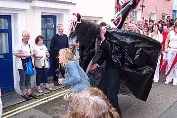 The Old 'Oss capturing a passing maiden during the May Day festival.