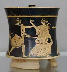 Attic red-figure pyxis showing Zeus chasing Aegina