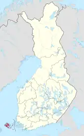 The external locative cases (adessive, allative and ablative) are used with this place name when referring to a location; for example, "in Åland" is Ahvenanmaalla.