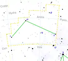 - (astronomy) A faint winter constellation of the northern sky, said to resemble a pump. The common English name is "Air pump".