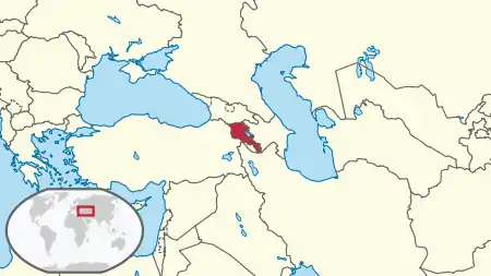 - Armenia (A country in the South Caucasus region of Asia, sometimes considered to belong politically to Europe)
