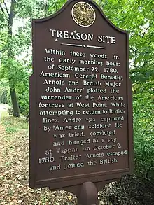 A plaque marking the site where Benedict Arnold supposedly committed his treason.