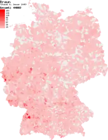 Braun m or f (proper noun, surname, masculine genitive Brauns or (with an article) Braun, feminine genitive Braun, plural Brauns)