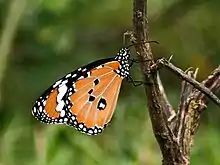 - (genus): Danaus plexippus (monarch butterfly) - type species; Danaus affinis (Malay tiger), Danaus chrysippus (African monarch, common tiger), Danaus cleophile (Jamaican monarch), Danaus dorippus (dorippus tiger), Danaus eresimus tropical queen), Danaus erippus (southern monarch), Danaus genutia (common tiger, Indian monarch), Danaus gilippus (queen), Danaus hamata (syn. of Tirumala hamata, blue tiger), Danaus ismare (Ismare tiger), Danaus melanippus (white tiger), Danaus petilia (lesser wanderer) - other species