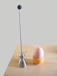 - (humorous) egg topper (a device used to create breaking points in egg shells in order to allow one to easily remove the top part of an egg using a knife without causing the shell to splinter)