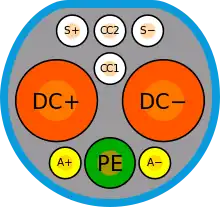 - (automotive) An electric vehicle charging standard, defining the physical plug, communications protocol, and charging method.