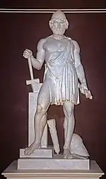 From Ancient Greek Ἥφαιστος (Hḗphaistos), of Pre-Greek origin.