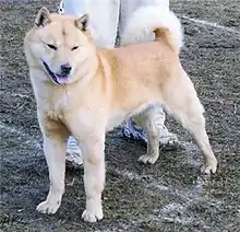 - A breed of dog originating from Japan, resembling a spitz dog breed, although not officially ranked as a spitz dog breed.