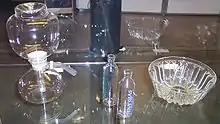- A type of fine-quality borosilicate glass with high resistance to shock and heat, used in science, technology, and tableware.