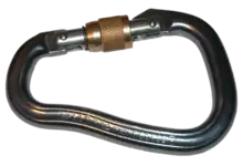 1. carabiner, snap hook, snap-link (metal link with a gate)