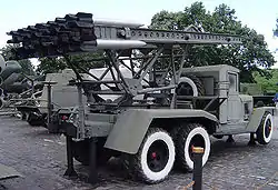 - A type of artillery rocket launcher consisting of an array of rockets mounted on a truck, originated in the Soviet Union.