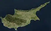 - Cyprus (an island and country in the Mediterranean Sea, normally considered politically part of Southeast Europe but geographically part of Western Asia)