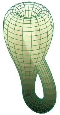 Calque of German Kleinsche Flasche, named after German mathematician Felix Klein (1849–1925), who first described such a surface in 1882.