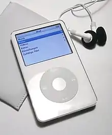 - an MP3 player (electronic device for playing digital audio files in the MP3 format)