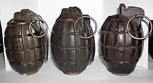 - Any of a series of British fragmentation hand grenades. [from 20th c.]