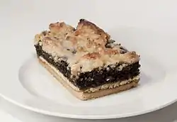 Mohnkuchen m (strong, genitive Mohnkuchens, plural Mohnkuchen)
