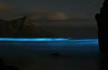 Blue glow produced by a Noctiluca bloom