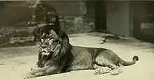 Young male Nubian lion in New York Zoological Gardens, 1903