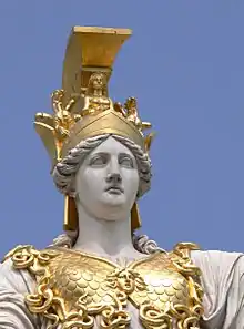 - (Greek mythology, rare) Of or relating to Pallas, an epithet of Athena, the goddess of wisdom, and potentially to other female Greek figures such as Pallas the daughter of Triton and granddaughter of Poseidon.