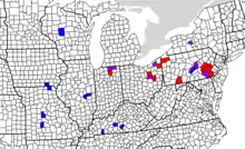 Red: The counties with the highest number of Pennsylvania German speakers.