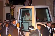 any of various vehicles with bulletproof glass sides used to transport the Pope