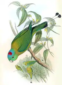 - A taxonomic species within the family Psittacidae – the yellow-breasted racket-tail.