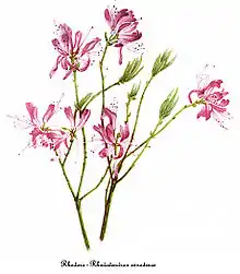 - (species): Ericales - order; Ericaceae - family; Ericoideae - subfamily; Rhodoreae - tribe; Rhododendron - genus; Rhododendron subg. Hymenanthes - subgenus; Rhodendron sect. Rhodora - section