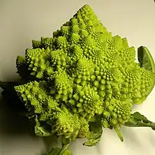 - Romanesco broccoli, a light-green edible flower bud of certain forms of Brassica oleracea var. botrytis, which is thus related to broccoli and cauliflower. Its form is a natural approximation of a fractal.