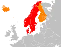 - (politically, culturally) Norway, Sweden and Denmark, sometimes also Finland and Iceland; the main Nordic countries