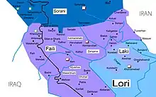 - The Kurdish language spoken in western Iran, and to a small extent in Iraq. Kalhuri (Kermashani), Feili (Ilami) and Laki are divided into the southern dialect subgroup.