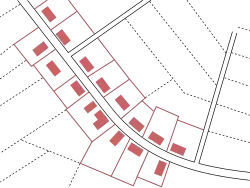 - Reihendorf (“ribbon development, linear settlement”), Hufendorf