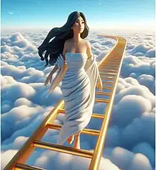 Goddess Tampha using the golden ladder in the heaven