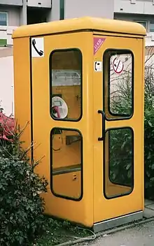- Synonyms: Fernsprechzelle, (Switzerland) Telefonkabine, (Germany) öffentlicher Fernsprecher