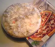 From tiefkühlen (“to freeze”) + Pizza (“pizza”).