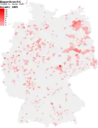 Regional distribution of the surname Wagenknecht in Germany in 2005 (by number of telephone mainlines)