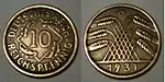 10-Pfennig-Stück der Weimarer Zeit mit Ähren – 10-Pfennig coin from the Weimar period with ears of corn