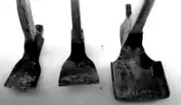 - A cutting tool that has a curved blade set at a right angle to the handle and is used in shaping wood.