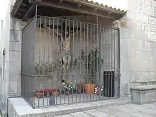An alpendre shelters an image, basilica of Santa María a Maior, Pontevedra
