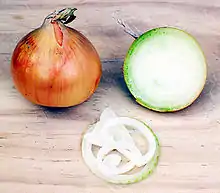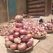 From Yoruba àlùbásà, ultimately from Arabic بَصَل (baṣal). Compare Yoruba àlùbọ́sà, àlùbásà, and Gun àlùbásà.