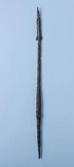 - (historical) A type of javelin with a barbed tip, used by the Franks and the various Germanic tribes in the Late Antiquity and Early Middle Ages.