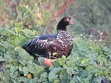 From a Tupian word, possibly via Portuguese anhuma, whence also anhima (see there for more).