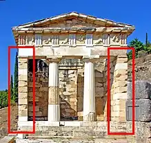 - (architecture) A kind of pier that terminates the walls of the naos, a kind of post or pillar on either side of a doorway or entrance of a Greek temple.