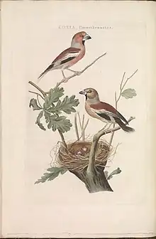 Coccothraustes coccothraustes in Nederlandsche vogelen, 1770-1829