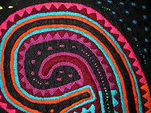 Detail of an appliqué by Venancio Restrepo, from Panama.