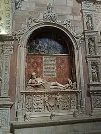 The 15th century arcosolium of Martín Vázquez de Arce, in the wall of the Cathedral of Sigüenza, Spain.
