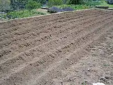 - (chiefly in the plural) plowed soil, plowed area, tillage; the layer of soil that is overturned by plowing