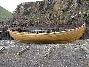 From the Old Norse bátr, from Old English bāt (“boat”). Doublet of beit, directly inherited from Proto Germanic.